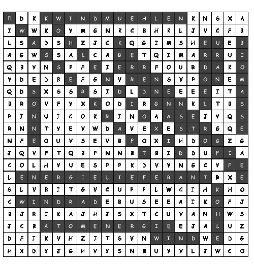 In diesem buchstabengitter befinden sich 16 wörter.